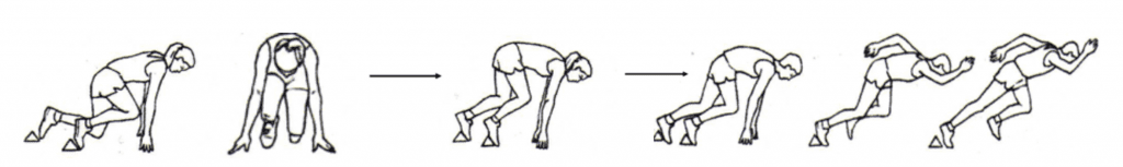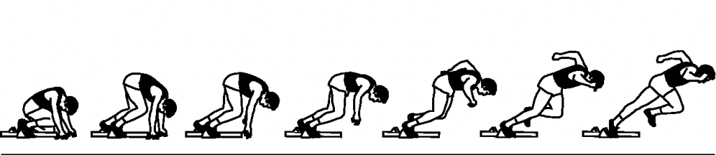 - Pelari mula bergerak apabila mendengar bunyi tembakan dengan menolak kuat kaki hadapan.