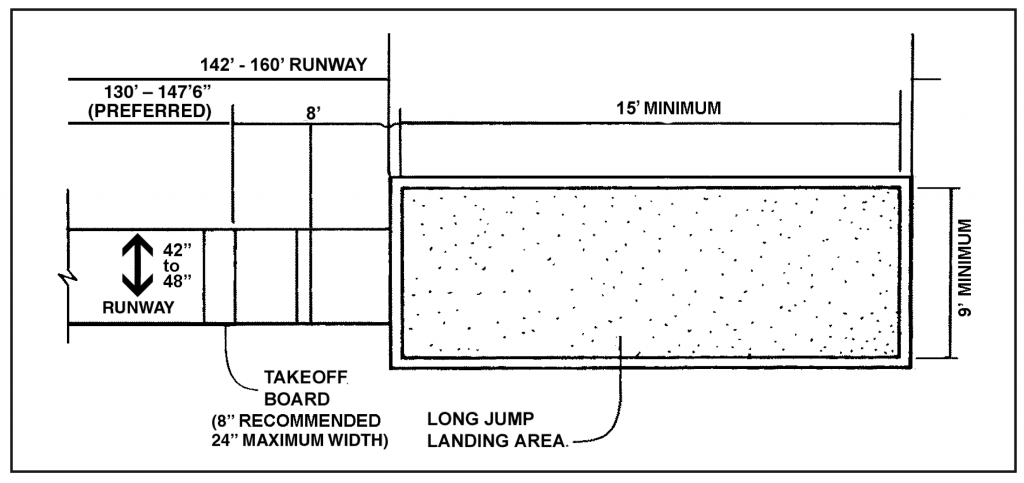 - Jarak larian untuk membuat lompatan tidak dihadkan dan kebiasaannya jarak yang digunakan adalah antara 15 hingga 40 meter.